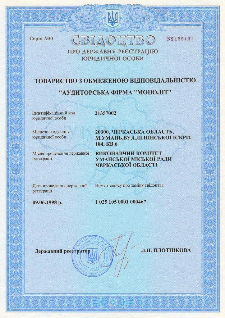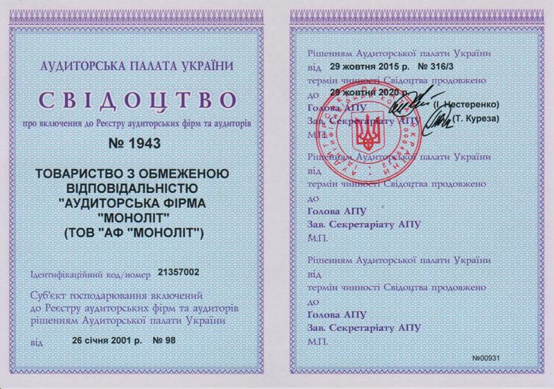 Свідоцтво про включення до Реєстру аудиторських фірм